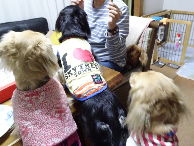 イチゴショートの クリームが少なめのところ わんこはおいしくいただき クリパは終了です
