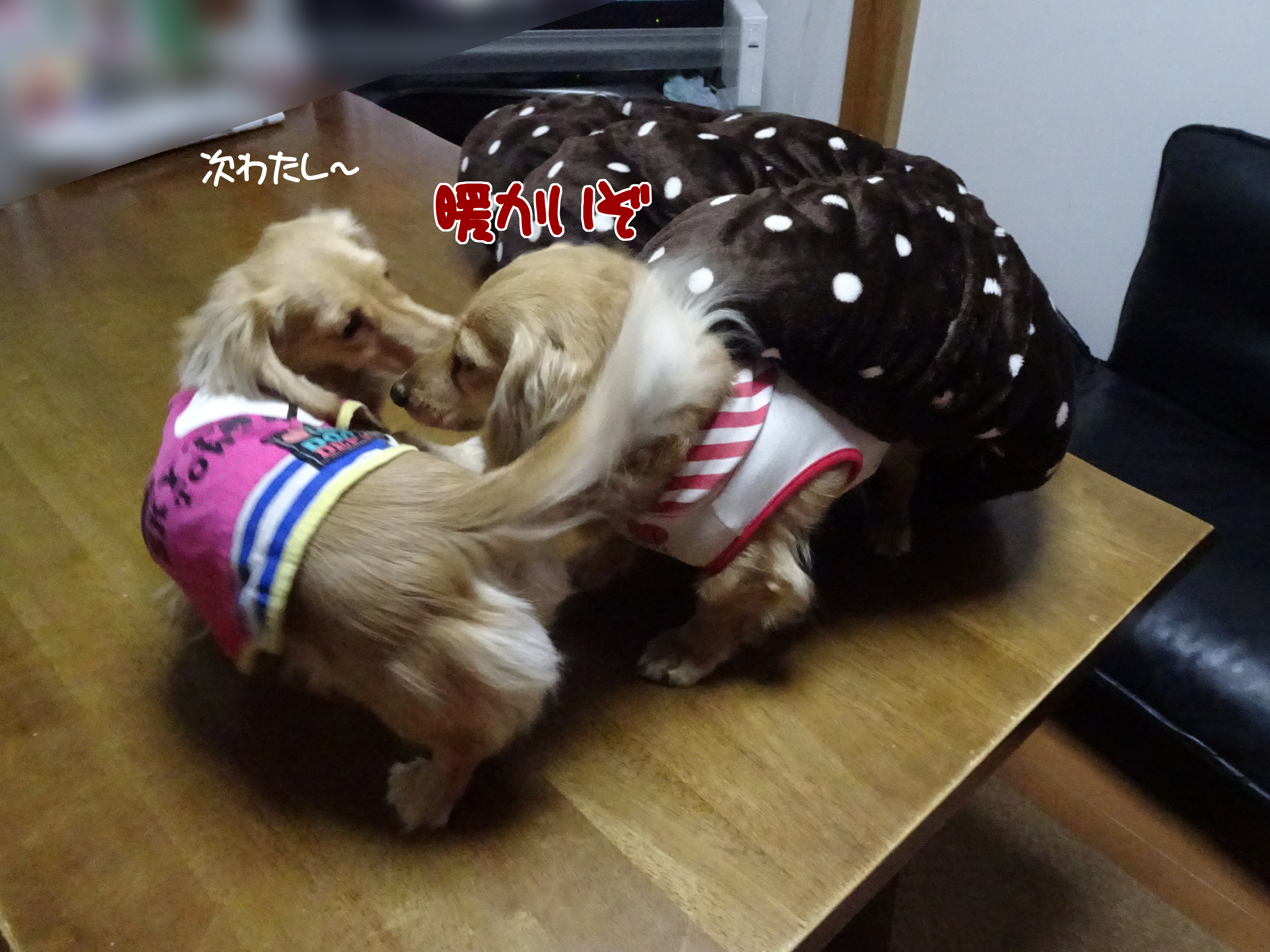 潜ると 全身暖かいんだろうけど うちの子たちは 潜ると言う観念がないようで 只の毛布ですね