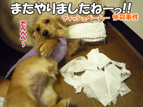 パパさんパニック。 2010年06月15日22:07 カテゴリ:メル ママが夜までお出かけの時は パパが一人でお散歩担当。 先日の夜、帰宅したママにパパがぽつぽつ話し出す。 今日、お散歩から帰ってリード外してすぐに僕、トイレ行ったんだ。 出てきてしばらく新聞読んだりテレビ見たりしてたんだ。 で、気が付いたらロコしか居ない
