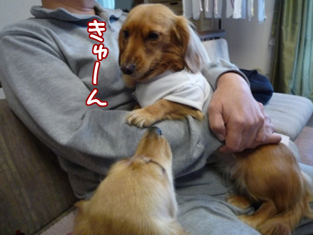 ママ行かんといてぇぇぇぇっ! 2011年03月03日06:00 カテゴリ:親子 週3日ほど外でお仕事してるママ。 出かけた直後のメルの落胆ぶりは凄い と常々パパが言うので今日は写真撮ってみよう。 さてと。 腕時計をはめた。 この時点ですでに落ち込んでいる。 上着を着た。 メルをなぐさめるロコ。ええ仕事しまっせ。 行ってきます