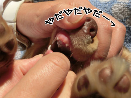 回収不可能か? 2013年11月14日00:59 カテゴリ:三代目たち 先日、「どんの自爆騒ぎ」で アロ君パパに診てもらった時に 「前歯は殆んど生え変わってますよ」 と言われてびっくり。 家に帰って モコの口を点検。 あけんか~い。 いっぱい抜けてるし。 メルロコの時は かなり回収できて 今