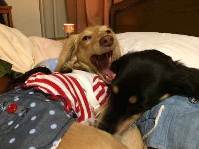 お散歩、上手になりました。 2014年04月24日00:00 カテゴリ:鎌倉お散歩 最近、 このふたりを見てると 面白い。 なにやらごにょごにょ言いながら ぴったりくっついて歩く。 たまにふざけたどんが ドカーンと幅寄せする。 でもモコはどん兄にくっついてく。 家でもこんな感じ。 生意気な妹と ぼ