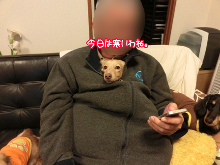 寒がりモコちゃん。 2015年01月22日00:00 カテゴリ:モコ 寒かったね~。 乗り換えの大船駅で 本屋に寄ったらさ そのあとすぐに 鎌倉駅で人身事故。 おかげで 一時間も足止めされちゃったよ。 ま、ルミネで買い物してたけどね。 一日パパを 追っかけまわしてたんやろ。 うん。 さっきか