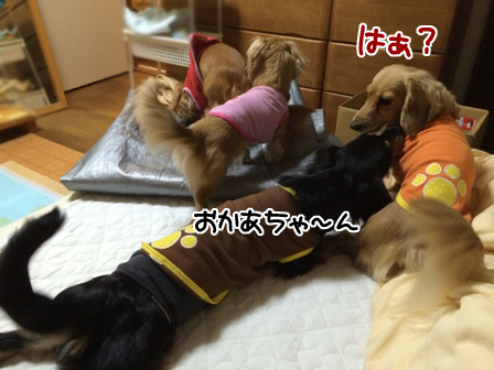 マザコン野郎。 2015年01月24日01:04 カテゴリ:小ネタ 夕飯後 ベッドでゴロゴロしてたら どんがロコに体当たり。 そのまま押し倒し・・・ 上に乗っかり・・・ ご就寝。 オムツ王子にポチ。 にほんブログ村 ミニチュア・ダックスフンドランキングへ