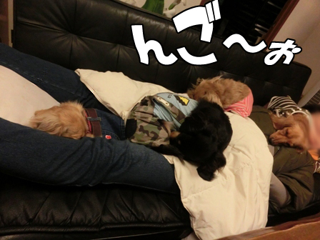 いっぱい歩いた次の日は・・・ 2015年01月27日00:00 カテゴリ:小ネタ 今日はみんな こんな感じ。 あっちでゴロゴロ こっちでゴロゴロ 昨日、 たくさん歩いたからね。 婆ちゃんと孫娘は… ただいま練習中。 結局 婆ちゃんに遊んでもらってる モコなのでした。 婆ちゃんしゅきしゅき~❤ 孫娘