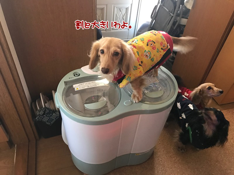 ワンコ専用を買いました。 2017年12月20日00:00 カテゴリ:お買物 アマゾりました。中古です。送料込み7800円です。新品で買うと倍はするハズです。大きさはこのくらい。でも軽いです。これは何かというと洗濯機でございます。洗濯容量は2キロまで。使い勝手は半世紀前の洗濯機と一緒。蛇口を閉じないと水は止まりません・・・。でも、脱水のパワーが凄い!どう凄いって・・・どこ行くんや洗濯機!でも便利。 「お買物」カテゴリの最新記事 < 前の記事次の記事 > コメント コメント一覧 (3) 3. クッキーボンボン 2017年12月22日 10:00 懐かしの2層式の洗濯機!! 今時はすごくおしゃれなんですね~♪ でも・・ どこいくねん! って私も突っ込んでしまいました(笑) 最近最新洗濯機を購入して大失敗した私です(笑) 2. エルサンメイ 2017年12月20日 12:42 いつも楽しく拝見してます‼ 動画見て笑ってしまいました。 うちも欲しいな~と思ってたんですが…置場所無さそうです… 1. しえる 2017年12月20日 01:27 どこ行くんや!!(゜Д゜≡゜Д゜)!? で、笑ってしまいました!!お腹いたい(笑) コメントフォーム 名前 コメント 評価する リセット リセット 顔 星 投稿する 情報を記憶