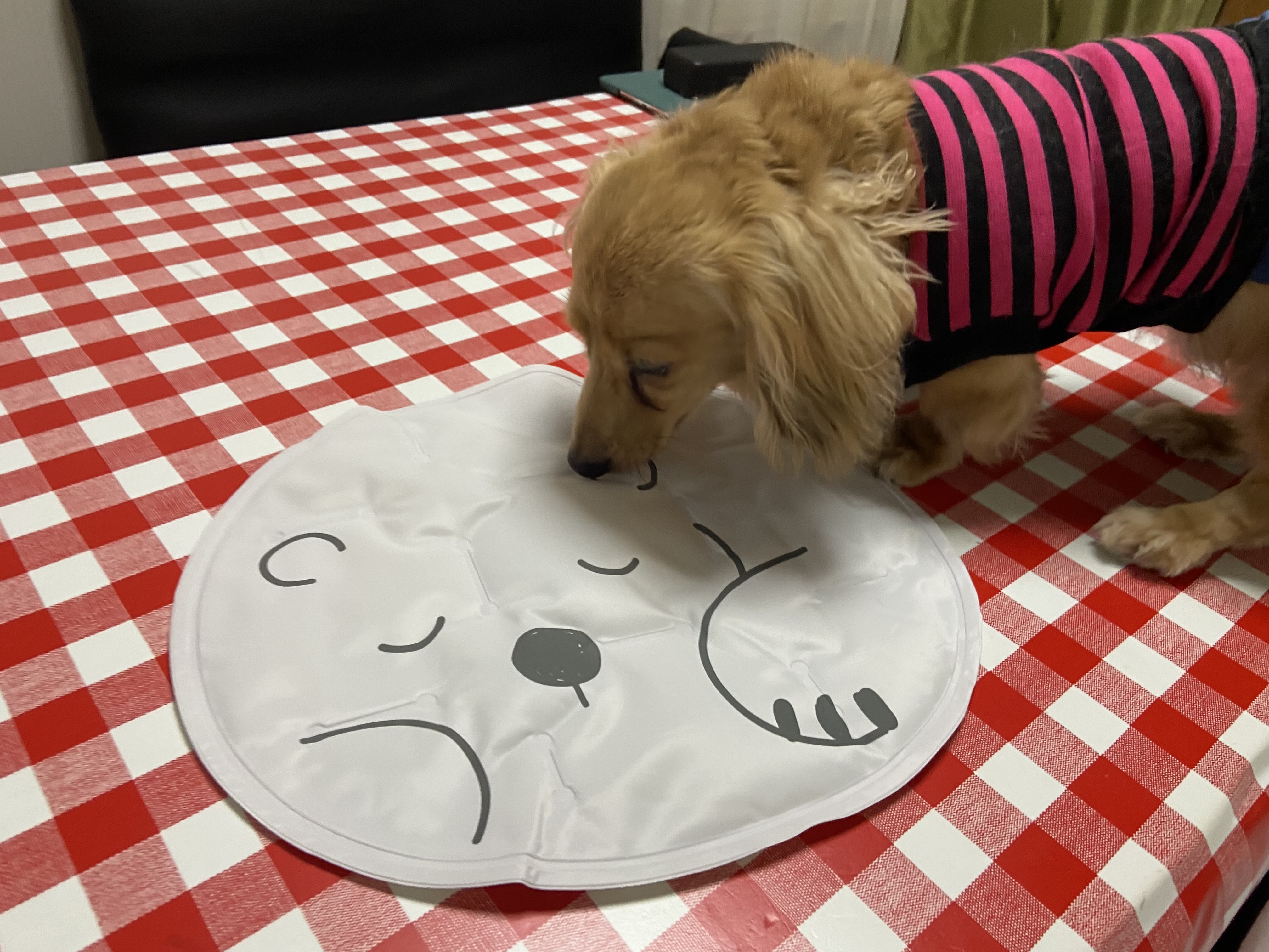 うちは、何年か前に、夏の終わりに半額で、1,000円くらいになっていたジェル入りの冷え冷えパットを買ってあげたんですが、ルビー乗らないんですよね💦💦