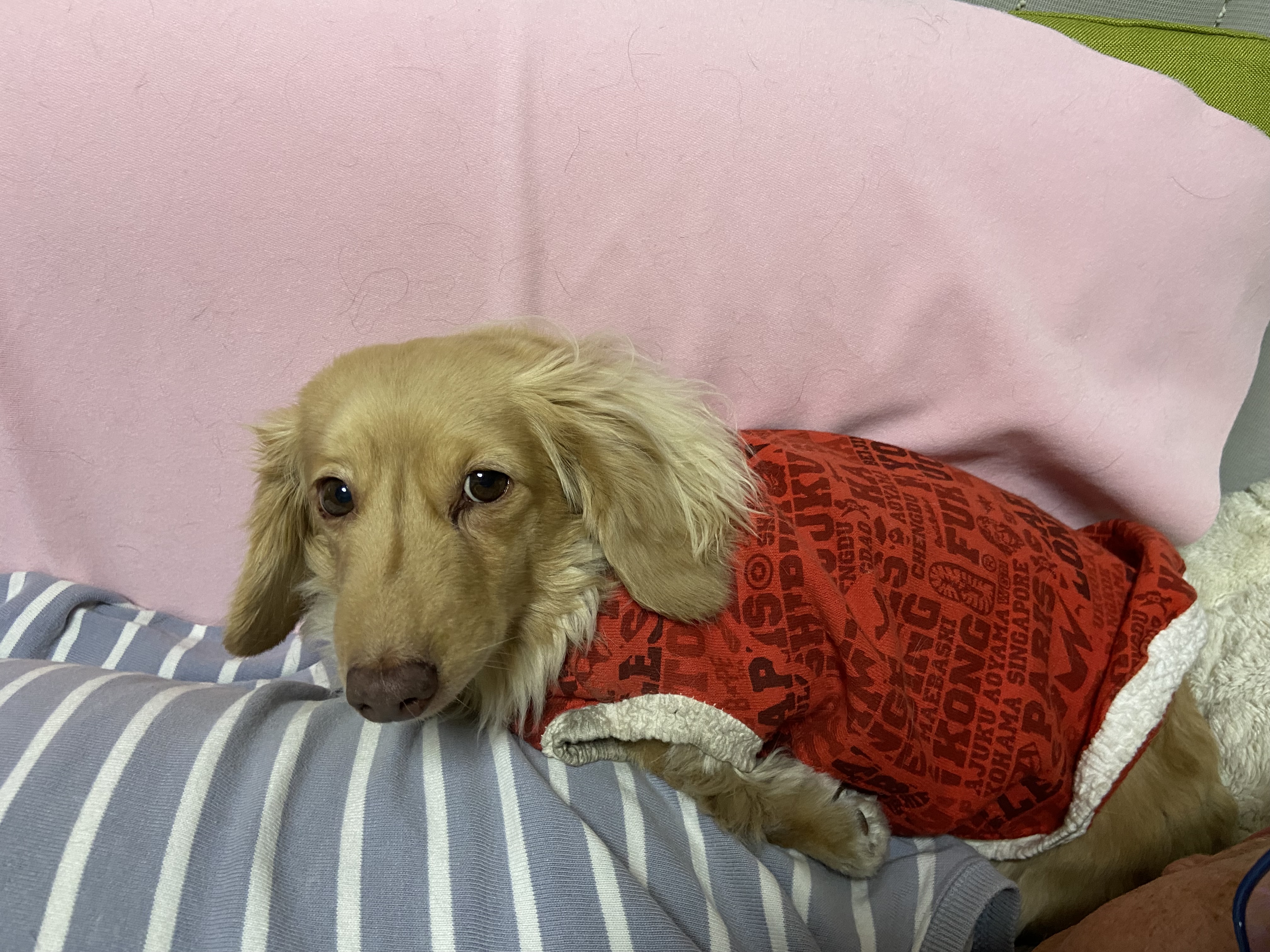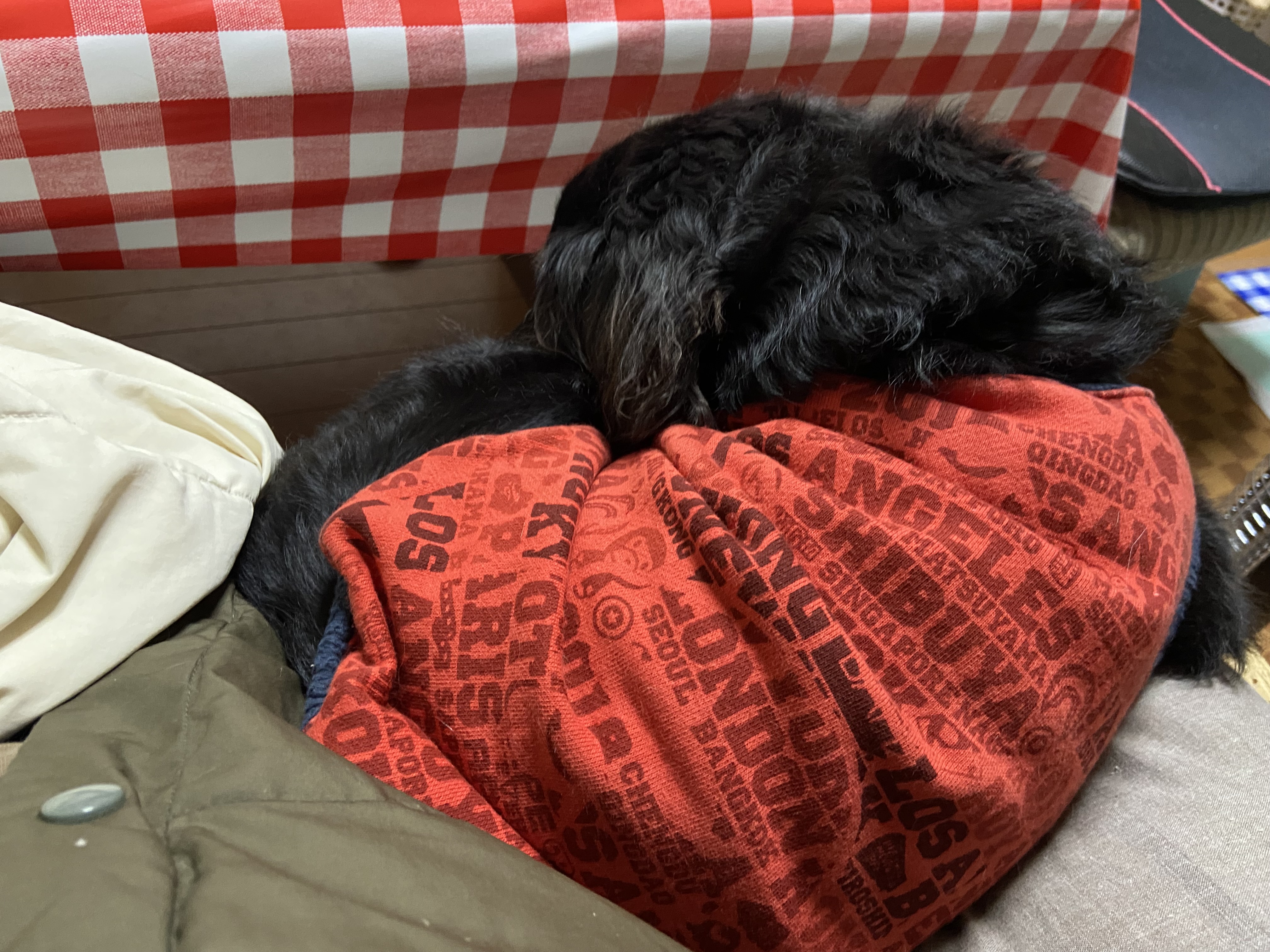 パパ腹で暖をとるモコ。