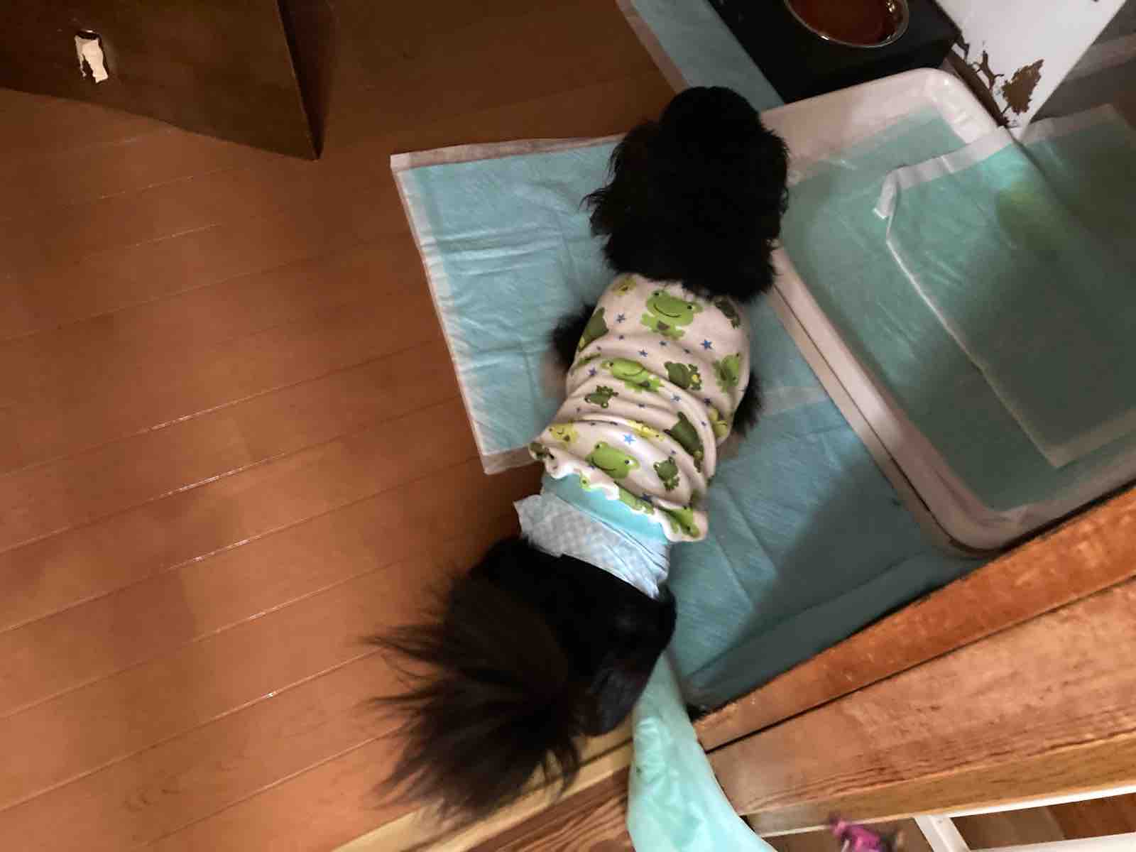 うちはトイレシーツをひっくりかえし、ビニール部分にして待ちます。