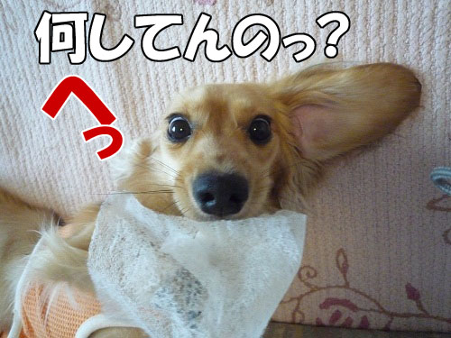 以前のブログの、新聞紙をじゃりじゃり舐めてるのを見て