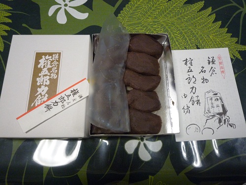 御霊神社参道の入り口に立つ、創業300年「力餅屋」製。