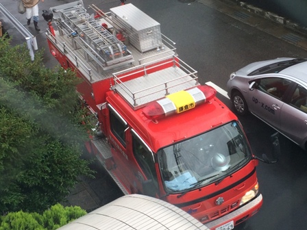 消防車も来たって ぼやでもあったかのでしょうか