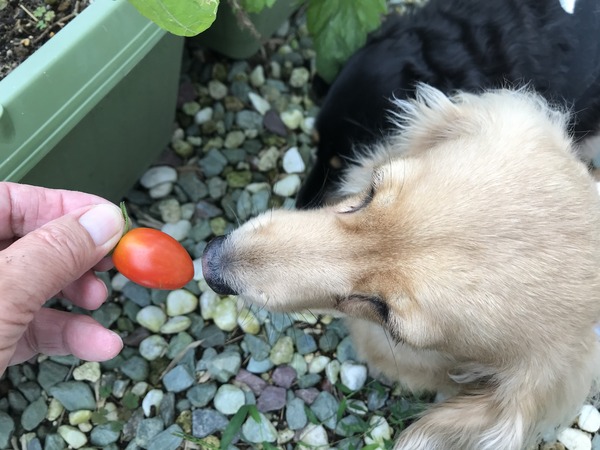 庭のトマトのハナシ。 2020年07月17日00:00 カテゴリ:プランターでお野菜 雨に閉じ込められてる間に庭の野菜か大きく育ちました。『なんかないの〜』のフタリ。この後パパからメールが来て『トマトはロコとどんが食べてしまったので今日のとれ高はゼロです』。なんと今日の食べごろトマトは全てこの黒いのんと白いのんの腹の中に。食べすぎやでアン