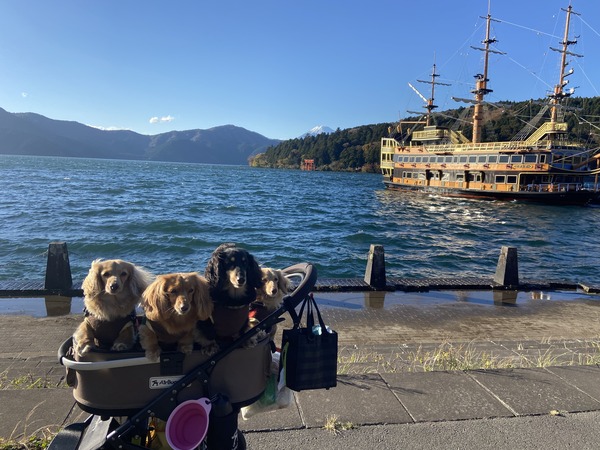 紅葉を愛でに。 2021年11月11日00:00 カテゴリ:車でお出かけ 水曜日午後から紅葉🍁を愛でに箱根に行ってきました。お天気バッチリ。先週末の時点ではまだまだの様子だったのですがこの2日ほどで葉っぱがどーんと落ちてしまいました。残念です。芦ノ湖と山中湖をはしごしてきました。この2ヶ所結構離れてるのね〜。山中湖に着いたらすぐ