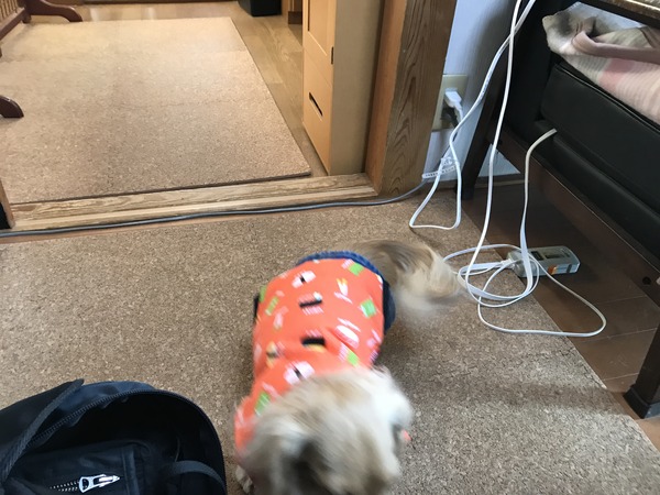 食べたくない。 2019年01月11日12:00 カテゴリ:今朝のわんこ パパが朝ごはんのカリカリを準備し始めるとキッチンから逃げてきて朝ごはん食べたくないと猛アピール中のモコ。とっても忙しいフリをするのが面白いですぅ〜〜。はよ、食べといで。