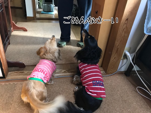 ごめんなさい。 2018年10月19日12:00 カテゴリ:今朝のわんこ 2階で寝てるのにオムツ外した途端走り出し2階のトイレじゃなく1階のトイレ手前で決壊した情けない兄と一緒に謝る母と妹コントロール不能のどんですわ〜