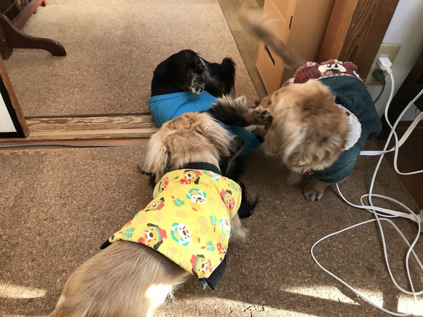 男はつらいよ。 2019年01月10日12:00 カテゴリ:今朝のわんこ 押し倒されてかじられて立ち上がろうとしてもまた倒されてベロベロベロー今朝も女子たちに可愛がられてるどん君なのでした。いつもありがと。