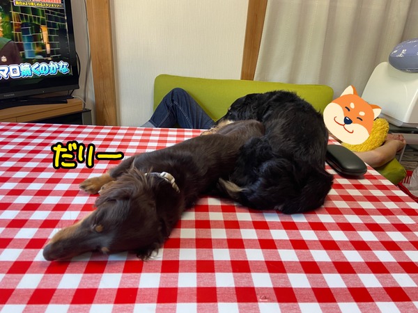 まだまだこれからやのにどうしよう。 2023年06月18日00:00 カテゴリ:どんぐり 晴天の土曜日朝から大洗濯祭りが開催されて午後の風景。画面奥は燃え尽きたパパ。先ほどノミダニよけを背中にテキテキされました。お散歩行こ、な。夕方、な。結局なんやかんやとバタバタして行けませんでした〜。夏本番はこれからやのにすでに暑さにめげてる我が家です。